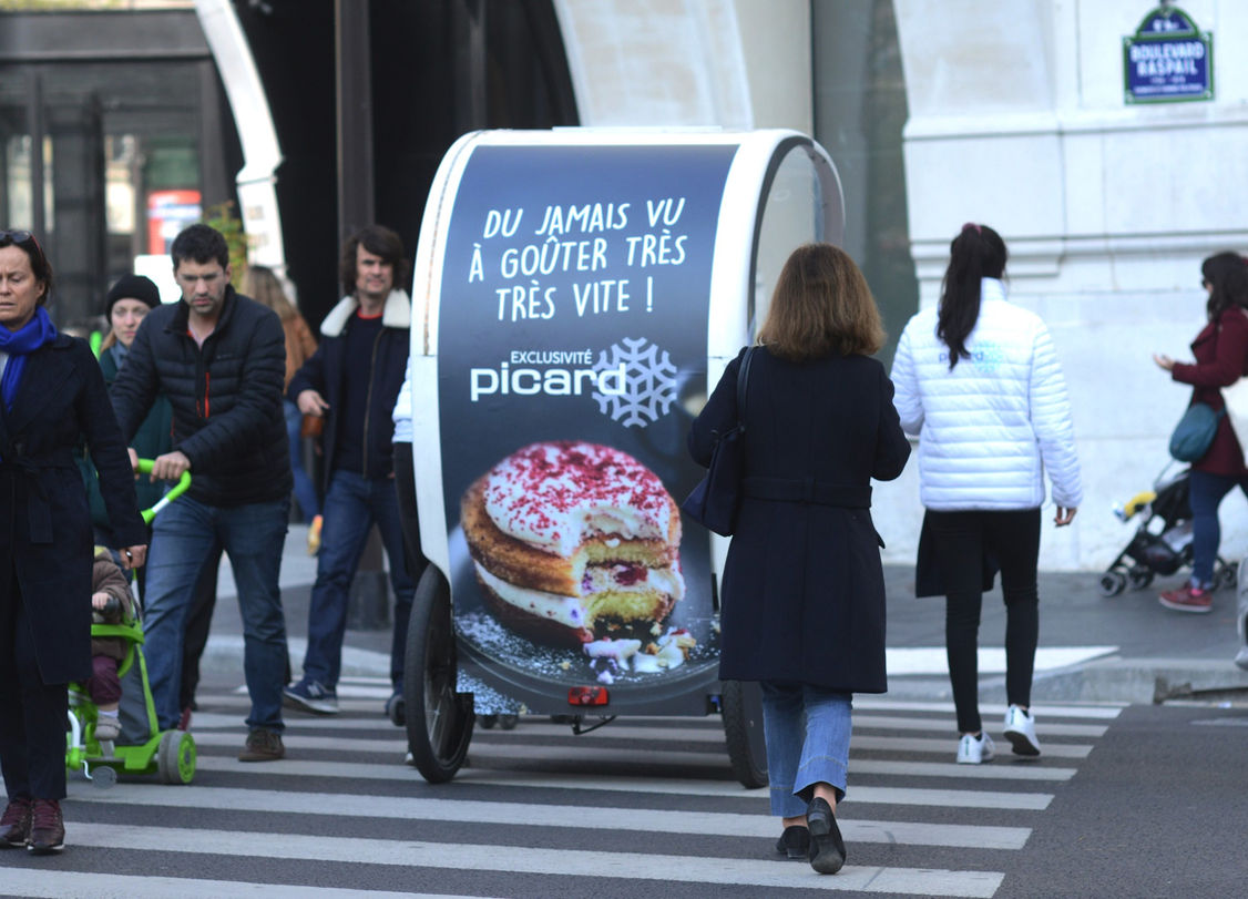 day. 8,000 to 10,000 goodies, flyers and catalogues are distributed. Electric cyclos customized with branded designs (taxis, transporters, renovators, etc.)